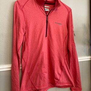 Womens Columbia long sleeve half zip. Has thumb holes. Convenient side of arm zipper pocket. Heathered pink. Omni wick advanced evaporation style. Size small. Great condition. Check my other listings to see if you’d like to create your own bundle. Thanks for looking