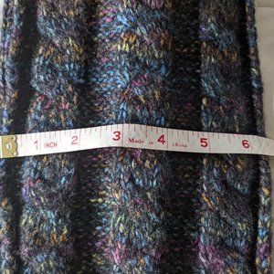 Black and Multi Knit Pom-Pom Hat and Scarf