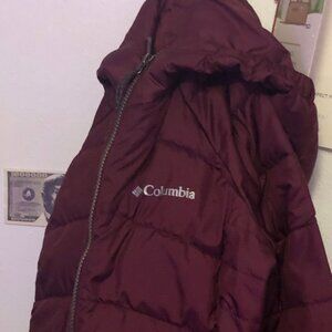 Long length hem, size small, burgundy color, brand is Columbia, originally bought at Kohl's Department Store.