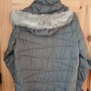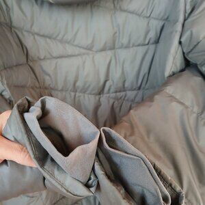 Like new. I don't think my daughter ever wore this jacket. The cuffs and everything are perfect. Her last name and first initial are on the tag as you can see in the cover photo.