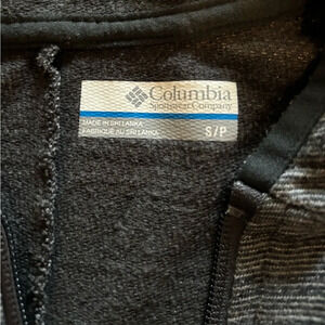 Women’s Columbia gray zipper hooded jacket. Good used condition. 60% cotton and 40% polyester.