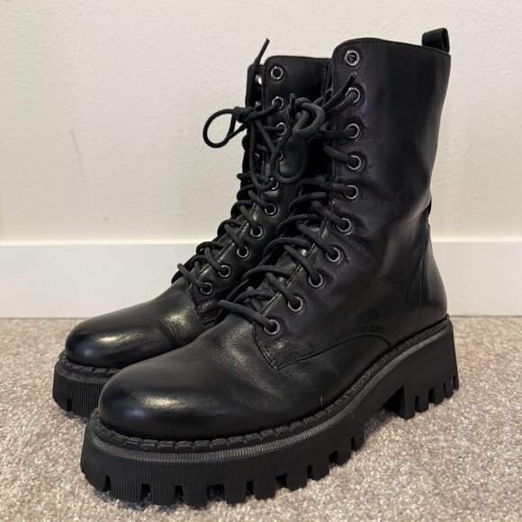 used in good condition pair of women's combat boots in size 7.5 for sale.