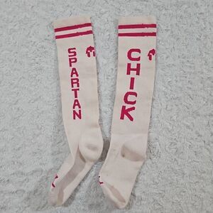 Spartan Chick womens compression socks pink and white by sox box WOD HIIT workout