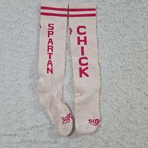Womens Compression Socks Spartan Chick pink and white by sox box WOD HIIT workou