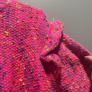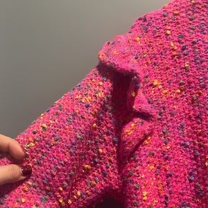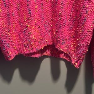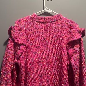 Women’s size Large Hot Pink Confetti Sweater with ruffle sleeves. New with tags, never worn.
