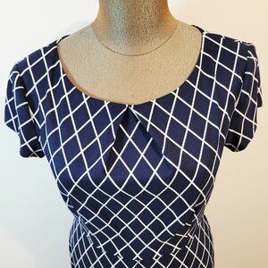 Womens Connected Apparel Sz 12 Sheath Dress Navy White Geometric Stripes Print
