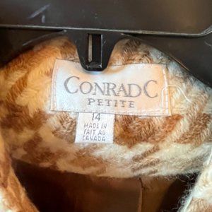 Women's Conrad C petite wool brown/tan/cream blazer sz 14 fall/winter warmth. Made in Canada. EUC