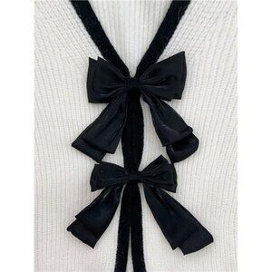 Women's Contrast Color Trim Bow Decor Back Split Sweater