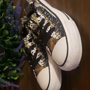 Description: These Converse classic Chuck Taylor All Star style sneakers feature the classic converse look with an updated color pattern and an elastic heel stretch fit with no laces needed. Great pair of authentic Converse sneakers and perfect for everyday wear