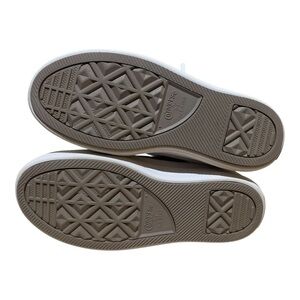New without box. Experience the classic style of Converse with these gray high-top sneakers, featuring a sleek design and iconic white accents. The durable rubber toe caps and midsoles ensure lasting wear, while the signature circular logo patch adds a touch of authenticity. Perfect for everyday wear, these sneakers combine comfort and timeless fashion.