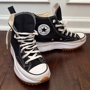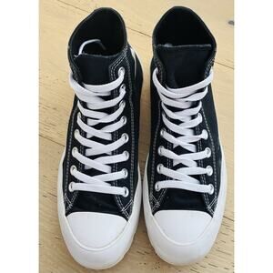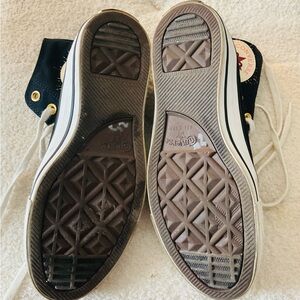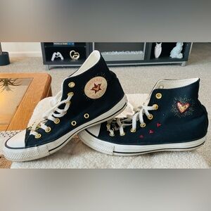 Women’s Converse White and Black High-Tops with Gold Eyelets Size 8