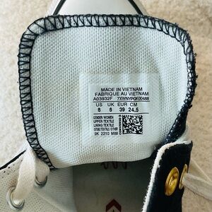 Classic high-top sneakers in white and black. Features gold eyelets and signature Converse style.