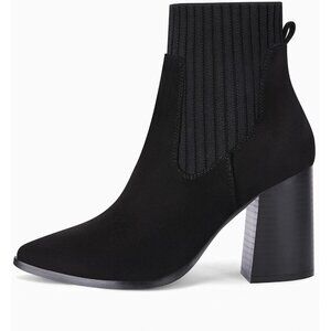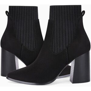 ⚡Women's Cool Black Ankle Boots Sock Pointed Toe Chunky Stacked High Heel