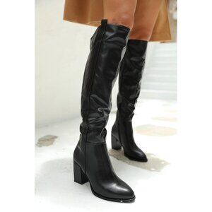 Design: Classic slip on knee high boots improved with faux suede and synthetic lining, very comfort.Boots use new block heels, special design for ladies who can not stand on stiletto
