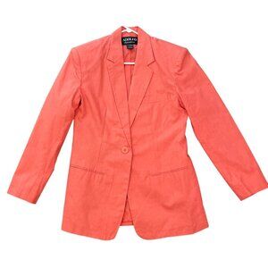 coral linen blazer, single button blazer, Adolfo blazer, women's size 6, summer jacket women, linen cotton blazer, formal coral blazer, Adolfo single button, coral suit jacket, coral office wear, tailored coral jacket, coral jacket long sleeve, lightweight women's blazer