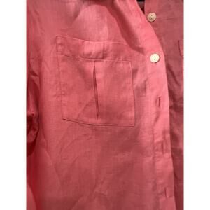 Womens Coral Pink Linen Button Up Long Sleeve with roll tab ,Pockets Preppy, classic size-14p