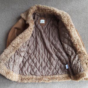 Available is a stylish, super cute Corduroy Coat. It was purchased in a small boutique in Seattle, Washington. It runs small so it could also fit a XS. The coat features s button closure and four front, functional pockets. The entire coat is trimmed with Shearling faux fur. This coat is excellent condition with no flaws or signs of wear.