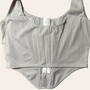 Womens Corset Crop Top Large L Gray Stretch Wide Straps Front Closure