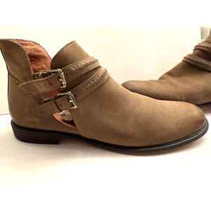 Women's Corso Como Islip Cutout Taupe Brown Double Buckle Strap Ankle Boot in size 9.5. These are in great condition. As you can see the interior of the shoes look clean, almost new. The outside has a few scuffs by the back heel, see photos for this.