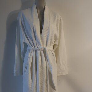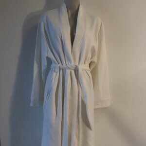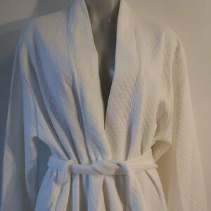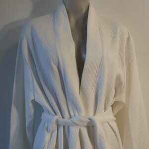 Womens Cotn White Cotton Blend Diamond Jacquard Belted Robe M
