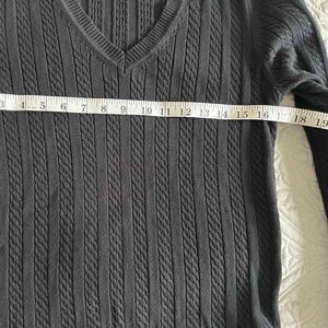 Women's Cotton Black V-Neck Ivy Sweater Made of Cable Knit size L