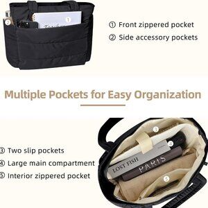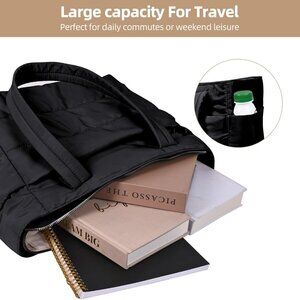 Features: Spacious and lightweight, this tote easily fits laptops, clothes, umbrellas, cosmetics, wallets, keys, and more. Crafted from soft, water-resistant nylon, it’s super easy to clean and keeps your belongings safe in rainy weather. Versatile design works as a shoulder bag, work tote, or travel companion — great for shopping, gym, or weekend getaways.