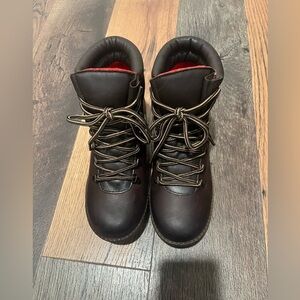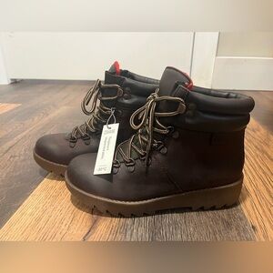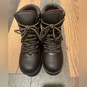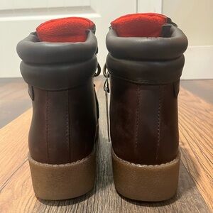 Classic Textured Ankle-Height Bootie With A Padded Sheep Napa Collar And Tongue. Rounded Toe. Functional Front Laces With Metallic D-Ring Eyelets. Thermoplastic Rubber Outsole.