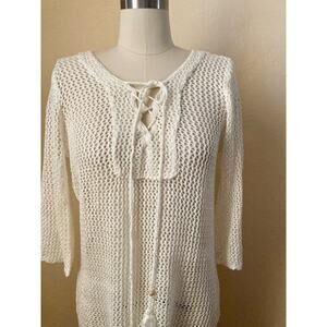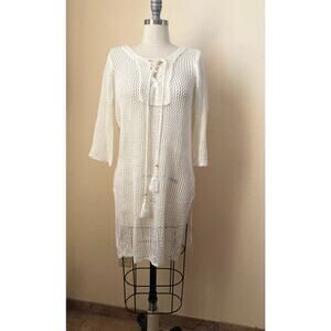 Women's Cover Up Long Sleeve Fishnet Top White Size S