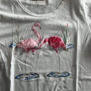 Womens Cover Up White Dress Resort Wear Vacation Flamingos Glitter Front Pockets