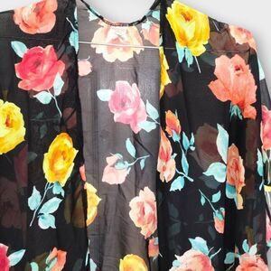 Womens Coverup Semi Sheer Black Red Pink Floral