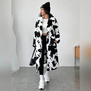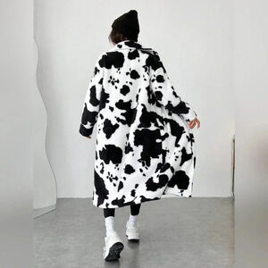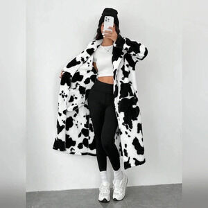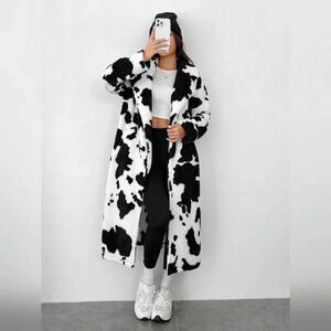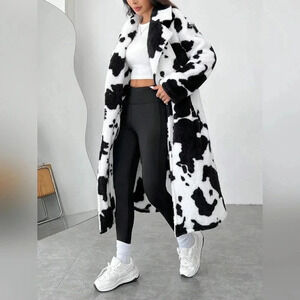 Women's Cow Print Faux Fur Long Coat