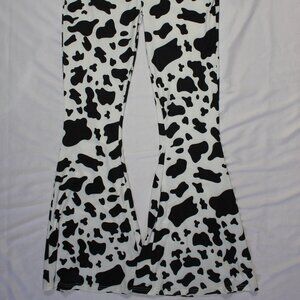 Women's Cow Print Flare Leg Stretch Pants Size M - 28 X 36