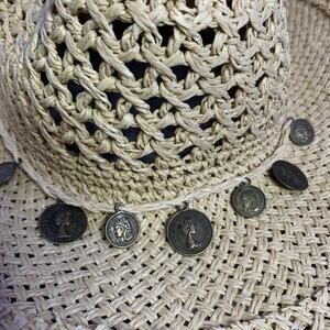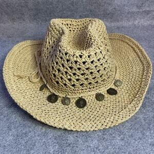 Women’s Cowboy Hat, Straw With Coins On Band, One Size, Tan, Fits Most
