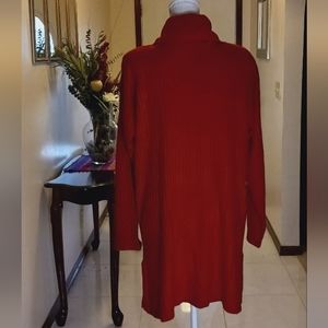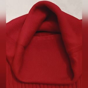 Cowl neck long sleeve cable knit sweater with side slits. Removable small shoulder pads. Large