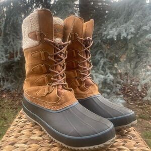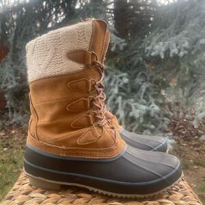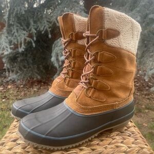 Women’s Cozy Leather Lace-up Knit cuff Robin Hood Waterproof Duck Boot Size 10