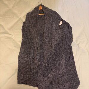 A soft and versatile gray open front cardigan sweater, perfect for layering in any season.