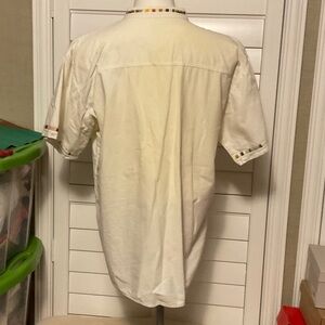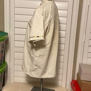 Discover elegance with this women's cream button down shirt, featuring stylish patterned accents. Perfect for any occasion.