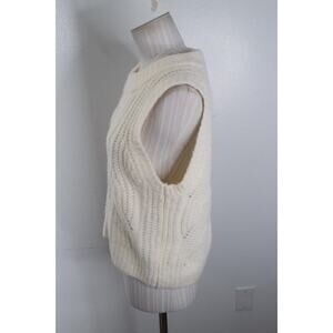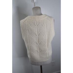 Stay cozy and stylish with this elegant cream cable knit sweater vest. Perfect for layering, this versatile piece adds a touch of warmth and sophistication to any outfit.