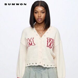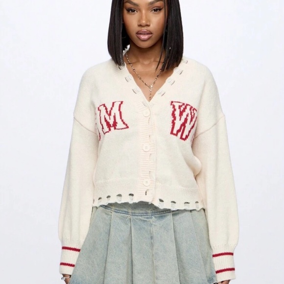 Elevate your wardrobe with the Women's Cream Cardigan. This stylish piece features bold red accents, perfect for adding a pop of color to any outfit.