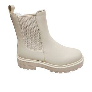 Womens Cream Chelsea Ankle Boots W/ Lug Sole Slip-On Leather Upper Size 9.5