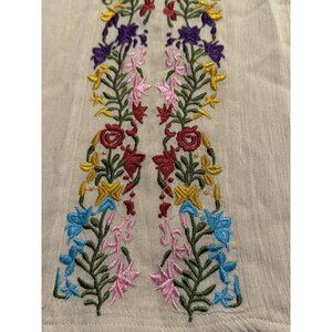 Womens Cream Floral Embroidered Beach Boho Swim Cover Up Dress Cottagecore Rayon