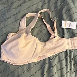 Experience comfort and style with this cream minimizer bra. Brand new with tags. 34DD but I think it runs more like a D. Nice, wide straps at the shoulder. Very soft and quality fabric.