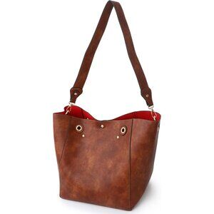 ⚡ Women's Cream Large Leather Big Bucket Crossbody Travel Tote Bag