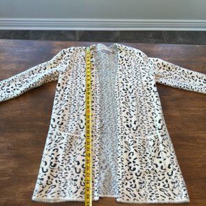 Stay stylish and cozy with this cream leopard print cardigan. Perfect for layering, this cardigan adds a chic touch to any outfit.
