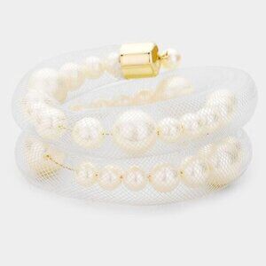 Women's Cream Pearl Bracelet Elegant Mesh Tube Pearl Adjustable Bracelet