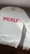 Stay cozy and stylish with this Women's Pickleball Sweater. This cream sweater features a bold pink 'PICKLE' design on the front, perfect for adding a playful touch to your wardrobe. 100% cotton. Brand new, never worn.