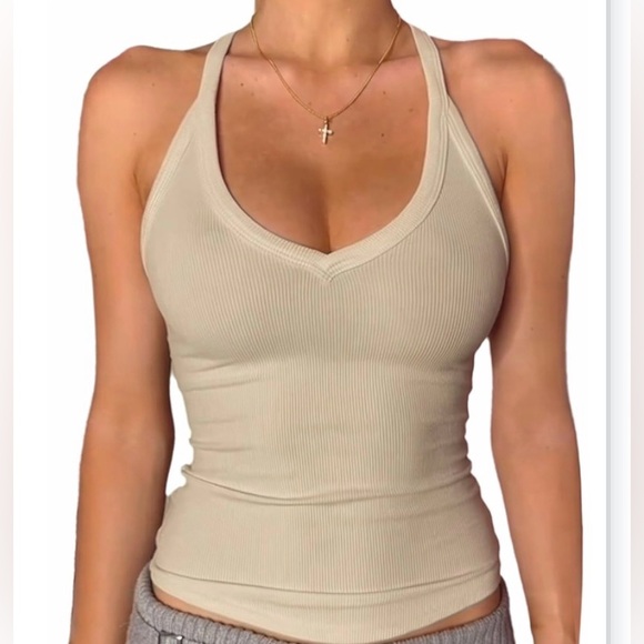Elevate your style with this chic cream ribbed razorback top. Perfect for layering, it offers a flattering fit, essential wardrobe piece