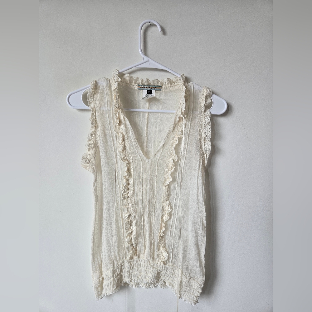Elegant cream top with delicate ruffles, perfect for any occasion.