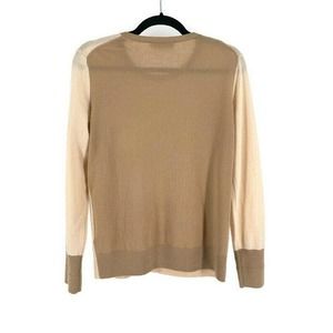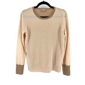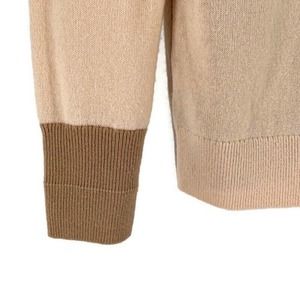 Elegant cream sweater with contrasting tan cuffs. Perfect for a cozy and stylish look.