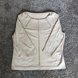 Women’s Cream Sweater w/ Leather Detail | Size Large
